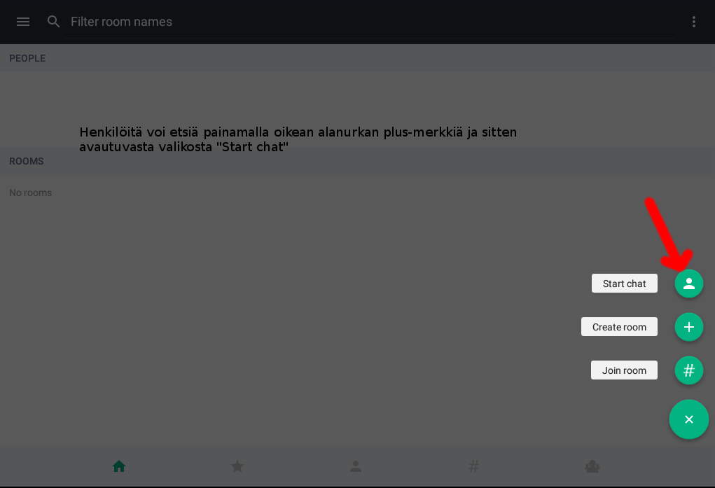 Voit tehdä uusia huoneita ja liittyä olemassaoleviin. Henkilölle jutteleminen perustaa