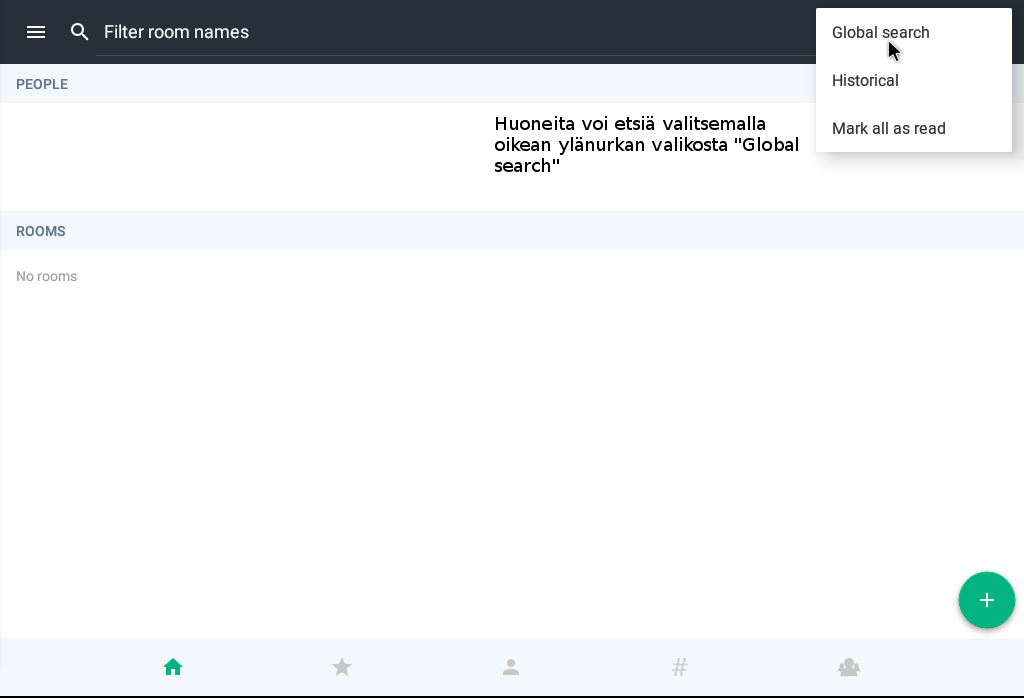 Matrixissa sekä kahdenkeskinen, että ryhmäkeskustelu taphtuu "huoneissa".